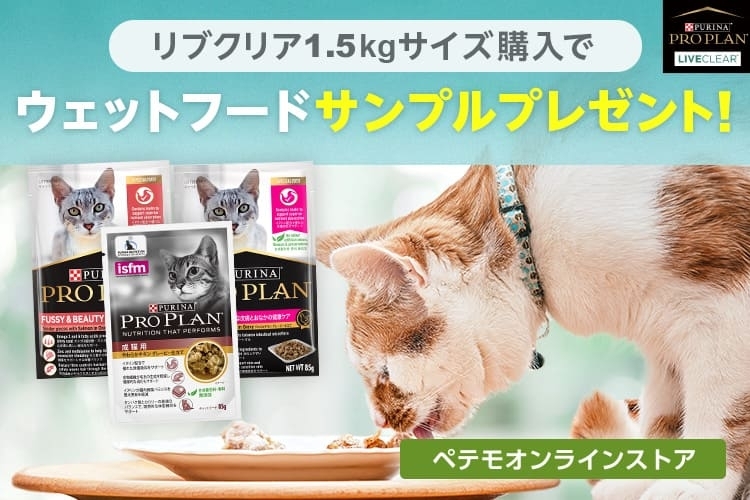 数量限定!リブクリア1.5kgの購入でウェットフード「プロプラン キャットパウチ」をプレゼント中!