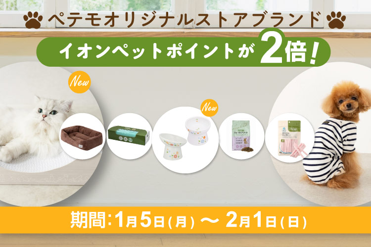 さらにわんちゃんねこちゃん用ごはん・トイレ用品お買い上げでイオンペットポイントが4倍!!