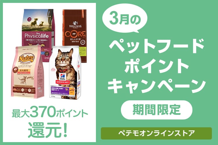 今ならペットフードの定期便の新規お申し込みで1,000オンラインポイントをプレゼント!